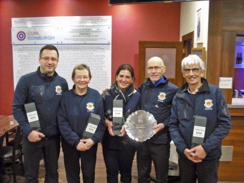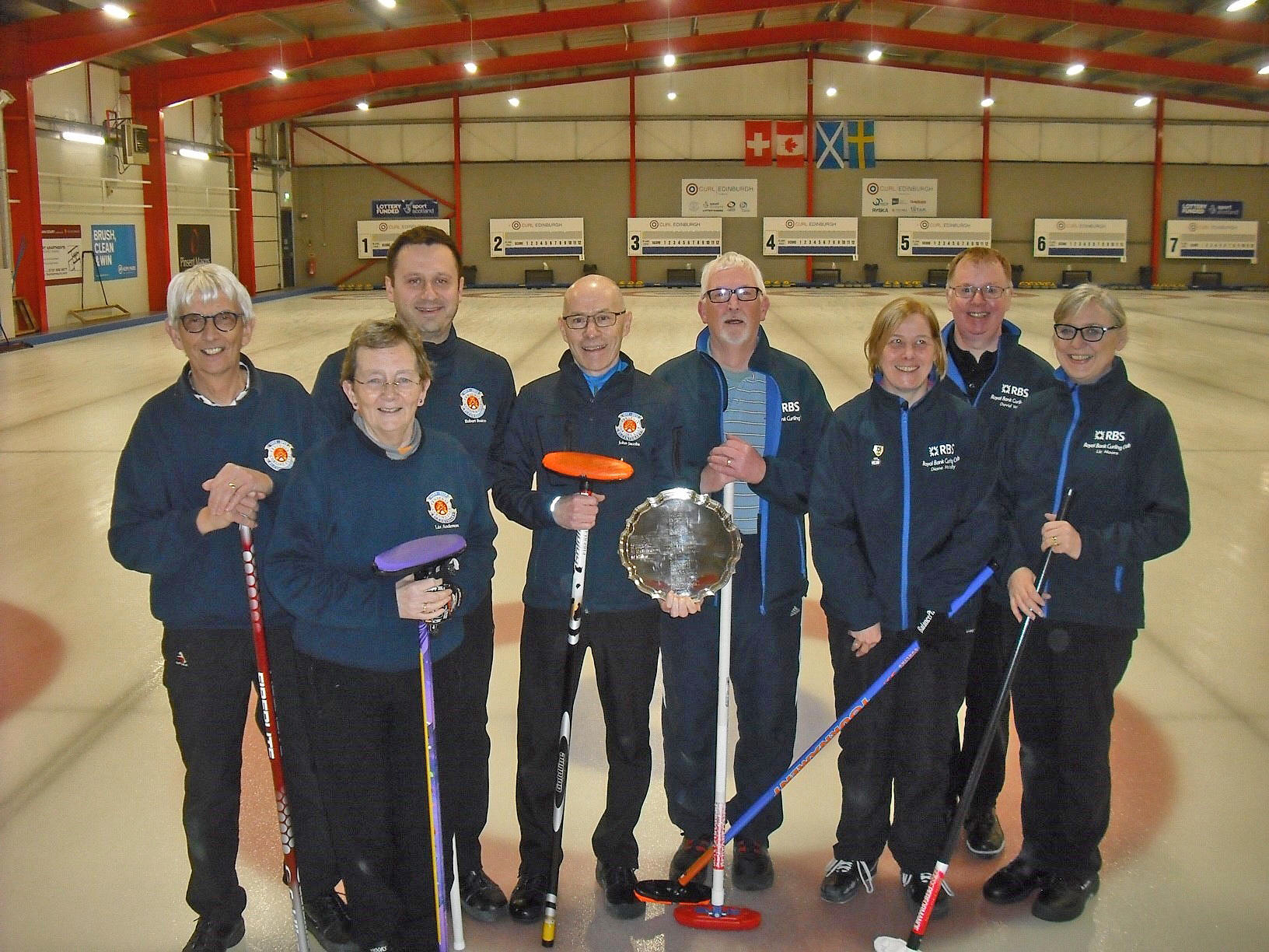 Penicuik Curling Club was represented in this annual fun event on Sunday 25 March by ‘golfers and curlers extraordinaire’ Jim Ramsay, Dave Carr, Ronnie Hope and Dave Anderson. The golf has been played over Carricknowe Golf course, a fairly innocuous test of golf, for the previous three years. This year however, due to unforeseen circumstances, the golf was arranged at the Edinburgh Merchants Golf Club situated within the city between Comiston Road and Colinton Road which, if you have ever driven past it, you might appreciate is rather hilly and a much more challenging prospect, especially as it turned out we were subjected to gale force winds and squally showers on the day of the competition.