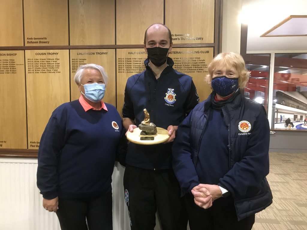 On Wednesday evening, the opportunity was taken to present the ‘foundation team’ at the Opening Bonspiel with the ‘ Bonspiel Booby Prize’ Trophy which had been retrieved from the Secretary’s loft where it had been held in safe keeping since last season.