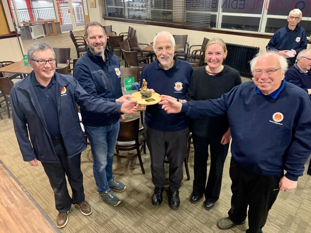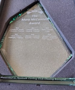 On the positive scoring side, it was a very close-run thing, but the Mary McConnell Winners Trophy went to the rink of Jim Ramsay, Margaret Carr, Alicia Neil and Paul Clapperton. (This Trophy is named in honour of ‘Wee Mary’ McConnell, another well respected former member of Penicuik Curling Club, again sadly no longer with us.)