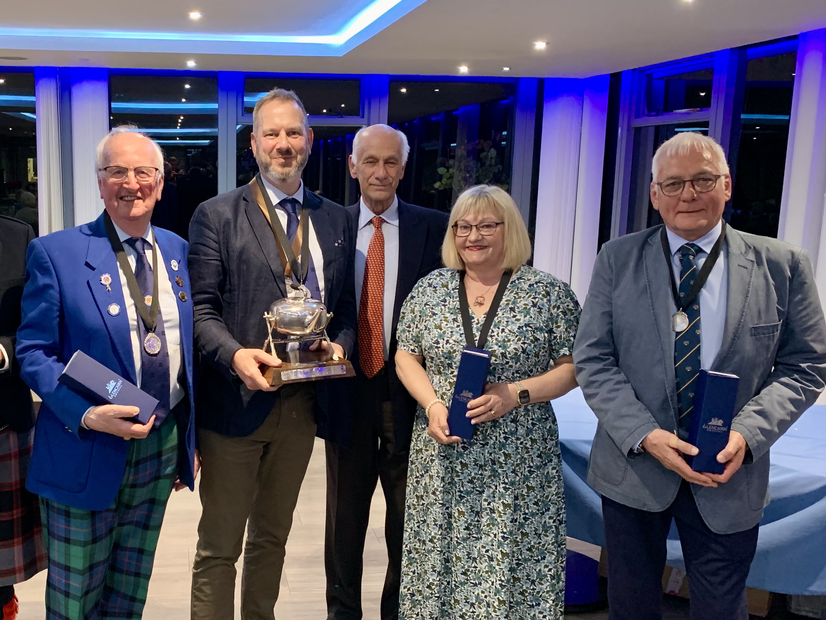 The formal part of the evening was completed with a well presented Thank-you speach by Vice President Margaret Carr. The night continued as members and guests mingled, chatted and congratulated each other with some even toasting Iain, Martin, Roger and Jean when Iain offered celebratory nips from his well earned Kettle.