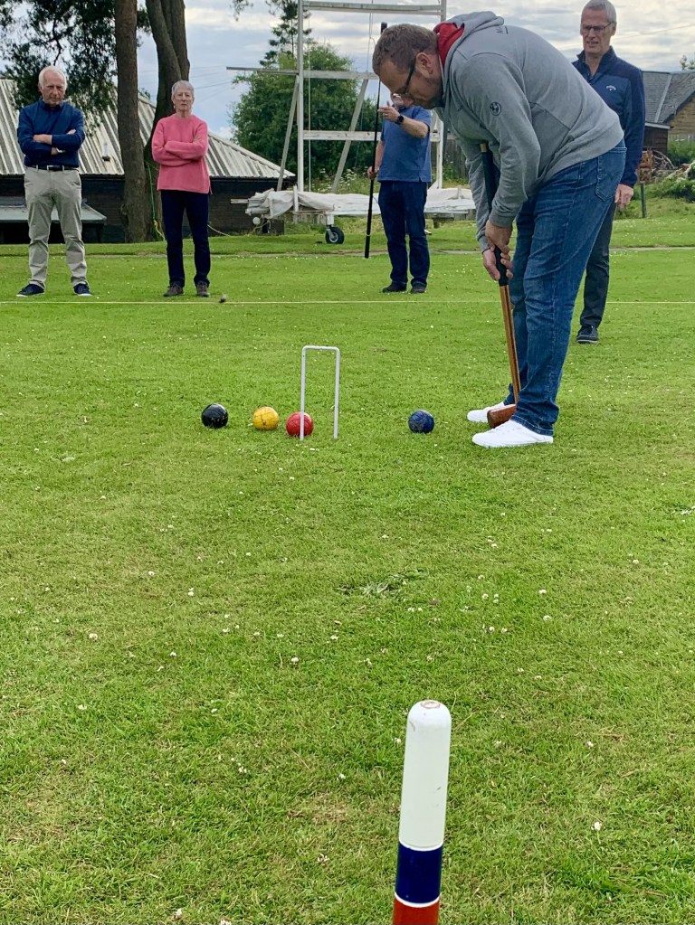 A drizzle in the air on Sunday 14th of July didn’t stop over 30 of our members attending our annual Croquet event. A change of venue from Penicuik Estate to Penicuik Cricket Club grounds worked well for us. Indoor facilities were available for refreshments and food out of the damp conditions.