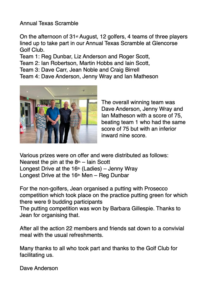 At the presentation we learned that we were only 18 behind the winners (Currie & Balerno) who scored +17. The ladies team from C & B were presented with a specially labeled bottle of Malt each, while all guests received a runner up gift of the same miniature 37 Club Malt.