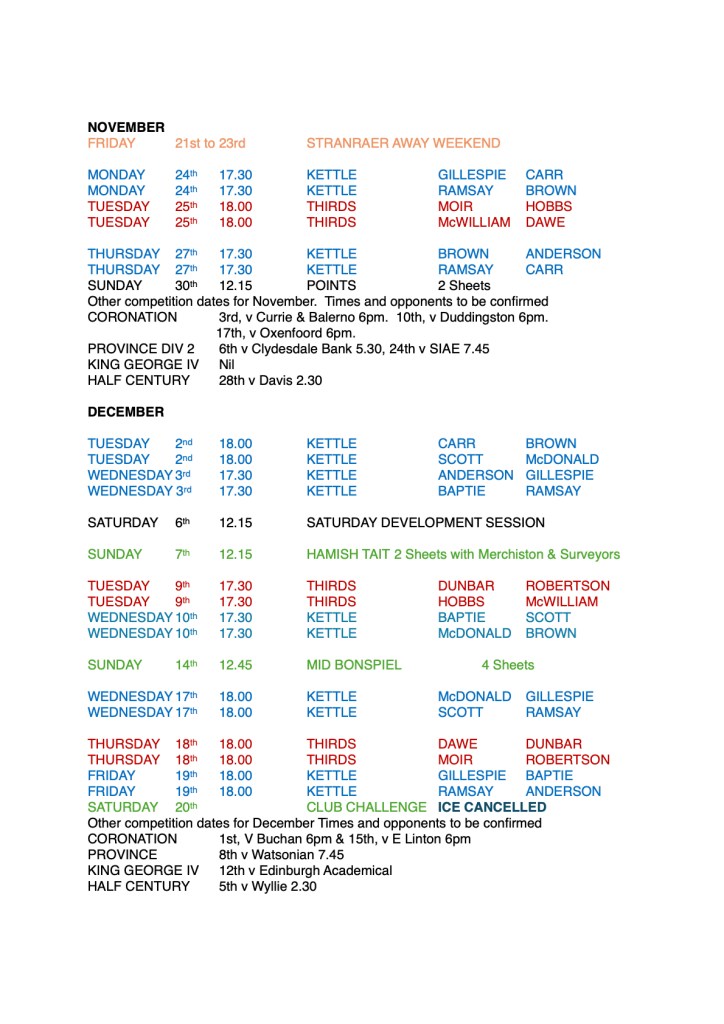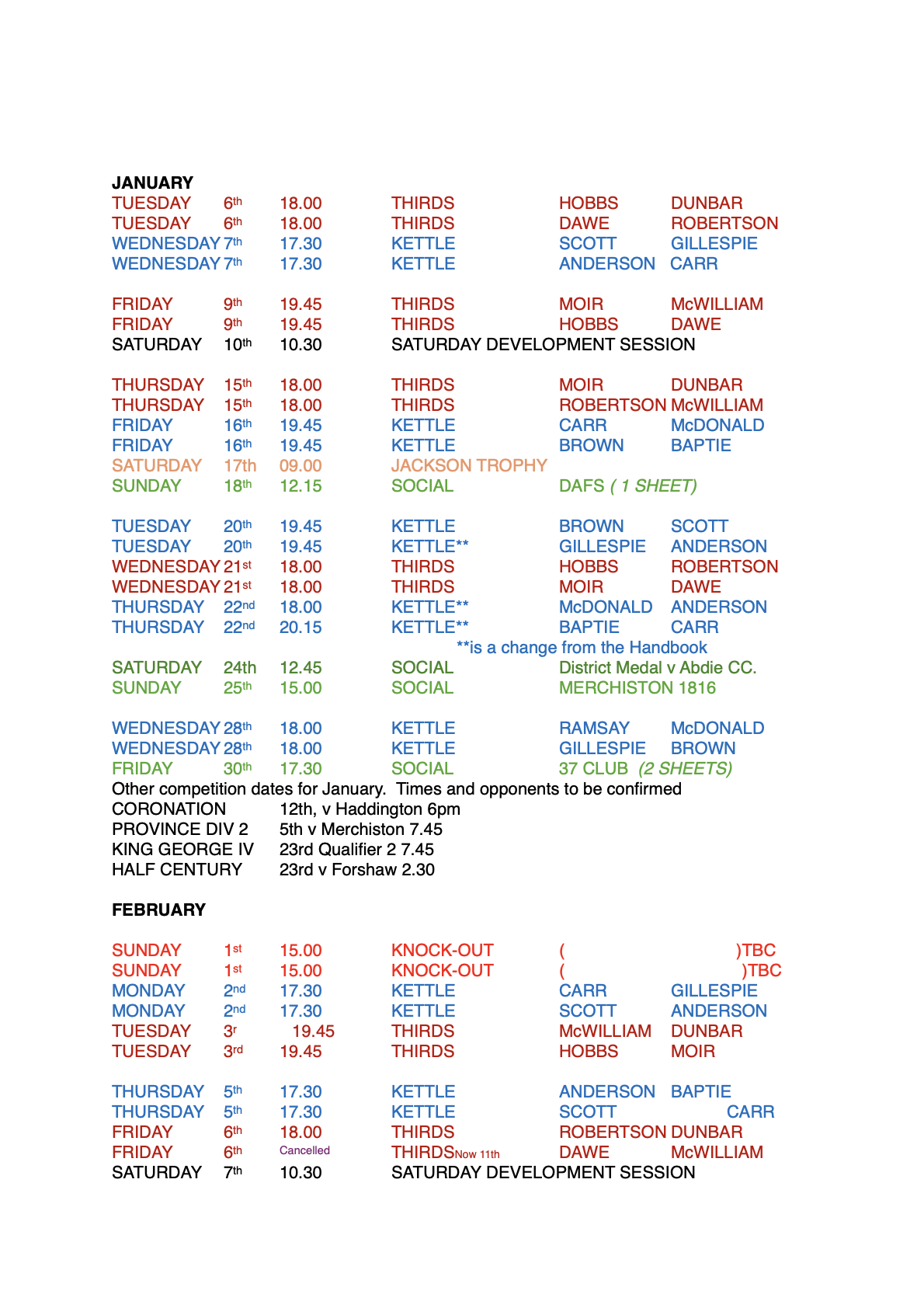Calendar Other dates that may concern members will be added before the start of the season. UPDATED 5/11/25