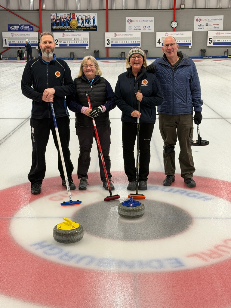 In the High Road section Keith and Heather had a clean road through to secure the trophy. In the first three ends they scored 2-1-2 and when Iain and Jean ran out of stones they congratulated the 25/26 Pairs Winners.