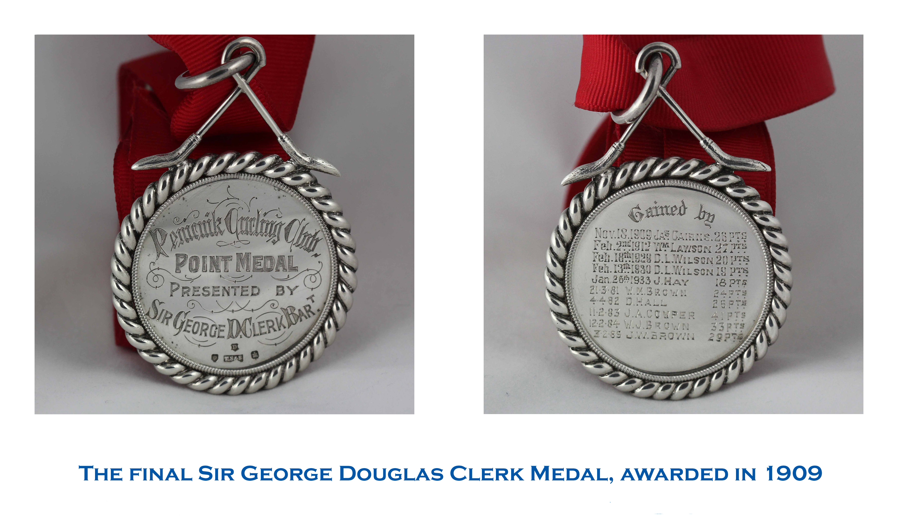 John Clerk, a son of Sir George Clerk (6th Baronet), was a member of the Club during the period 1838-1841, and thereafter was an Honorary Member until his death. He presented the Club with a medal in the winter of 1870-71, a fact that unusually does not appear to have been recorded in the minute book. The medal was gained by Thomas Lamb in 1871. This medal has been awarded annually to the winner/runner-up of the Singles Competition.